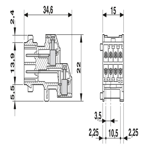 Phoenix Contact 1583568 The contact insert is a part of the VARIOCON series with a light gray color and features eight pin contacts, accommodating conductor cross sections ranging from 0.14 mm2 to 1.5 mm2, making it suitable for applications up to 160V and 10A rated current, secured through screw connection, specifically designed for pin-style connections that can only be connected or disconnected when the system is not under load.