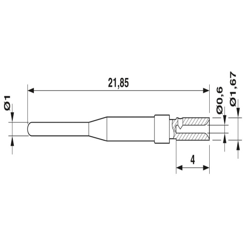 Phoenix Contact 1623776 A contact with a specified diameter of 1mm features a crimped connection and has a recommended range for the crimp size, which is between 0.08 mm² and 0.22 mm². An alternative product meeting EU RoHS II regulations without exceeding lead content below 0.1% is identified by item number 1244971.
