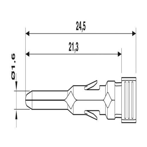 Phoenix Contact 1004365 A crimp contact has a specified set of dimensions and materials including a diameter of 1.6mm with the contact material being Cu alloy nickel-plated, surface treated with silver plating, and a cross-sectional area ranging between 1.5-2.5 mm^2 with connections available in AWG sizes 14 to 16.