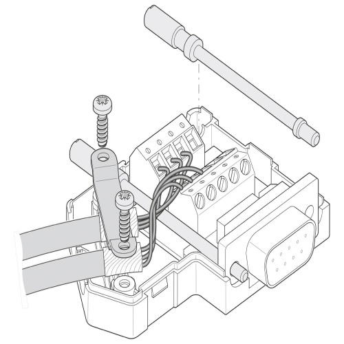 Phoenix Contact 2799490 A D-SUB connector with a 9-position female connector is used for connecting multiple buses such as CAN, SUCONET K1 and K2, S-BUS (Saia), J-BUS (Merlin Gerin) to the system. The pin assignments are specifically designated as 2, 3, 4, 5, 7, and 9 to two separate screw connection terminal blocks.