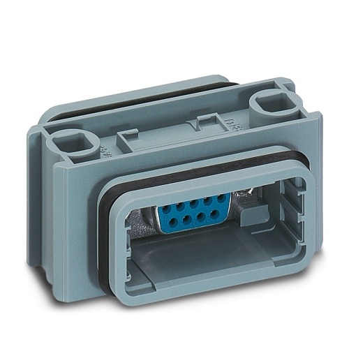 Phoenix Contact 1689637 The specified D-SUB connector features an IP67 rating for dust and water resistance, accommodates up to nine positions, is constructed from plastic, utilizes a coupling connection method with a straight cable outlet, has a standard gray color, and is considered universal.