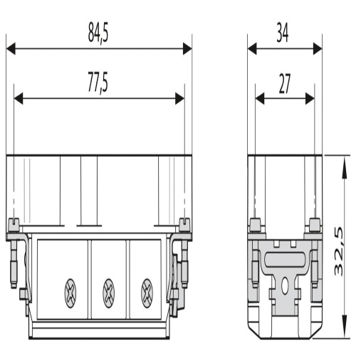Phoenix Contact 1406531 A contact insert with a specific configuration is required for use in electrical applications, featuring six or more pins arranged in a B16 size with one connection per position and utilizing pin and screw connections suitable for high-voltage systems operating at 400V/690V, carrying a maximum current of 41A and providing a cross-sectional area of 0.5mm².
