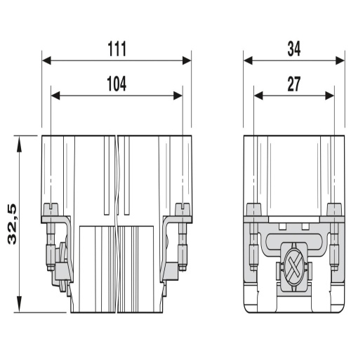 Phoenix Contact 1584114 The contact insert has various specifications that make it suitable for a specific application. It features 108+PE positions, with each position accommodating a single pin and crimp connection. The insert's dimensions are B24, and its cross-sectional area ranges from 0.14 mm2 to 2.5 mm2. These dimensions enable the contact insert to efficiently carry electrical currents of up to 10 A at a voltage rating of 250 V.