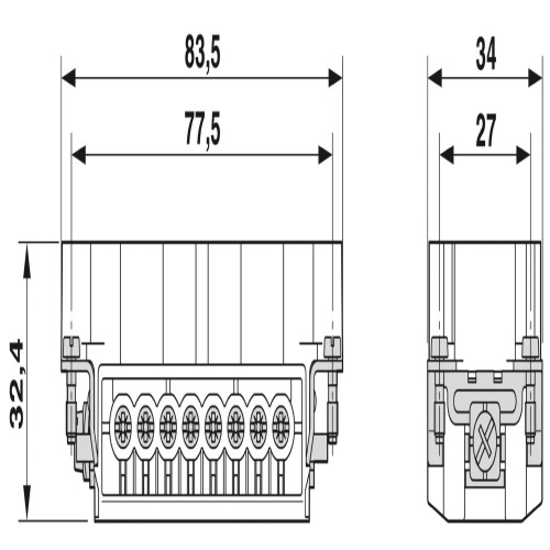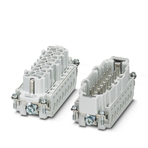 Phoenix Contact 1584871 The contact insert is available in various configurations that support multiple positions and have a size of B16. It features a pin and screw connection and can handle electrical currents up to 16 amps at a voltage rating of 500 volts with copper wire gauges ranging from 0.5 mm² to 2.5 mm².