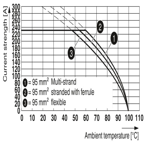 Phoenix Contact 1708753 The panel feed-through terminal block features a T-LOX knee lever connection and cable lug connection with two positions available. The maximum load current it can handle is 232 amps, with a specific orientation for conductor placement that aligns with the plug-in direction at a 0-degree angle, measuring 71mm in width and boasting a gray color.