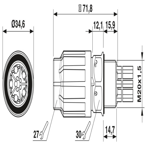 Phoenix Contact 1403733 - Panel feed-through - 5 Positions - Cu - 16 AWG - 20 Amp - 690 V - IP66 - Individual Wire Connection - Screw Locking