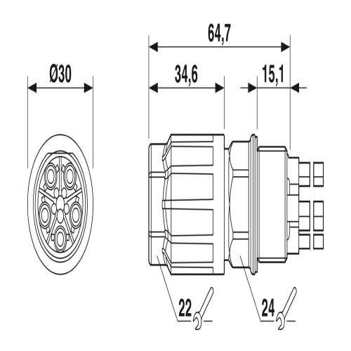 Phoenix Contact 1414733 - Panel feed-through - 5 Positions - Cu - 20 AWG - 17.5 Amp - 690 V - IP66 - Individual Wire Connection - Screw Locking