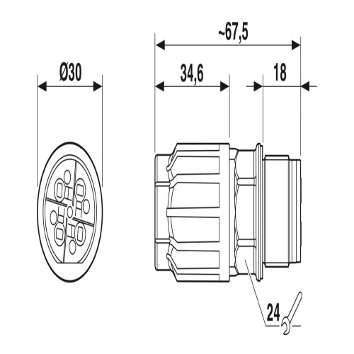 Phoenix Contact 1424002 - Panel feed-through - 4 Positions - Cu - 16 AWG - 20 Amp - 690 V - IP66 - Push-In Connection - Screw Locking