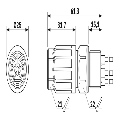 Phoenix Contact 1414678 - Panel feed-through - 4 Positions - Cu - 20 AWG - 17.5 Amp - 690 V - IP66 - Individual Wire Connection - Screw Locking