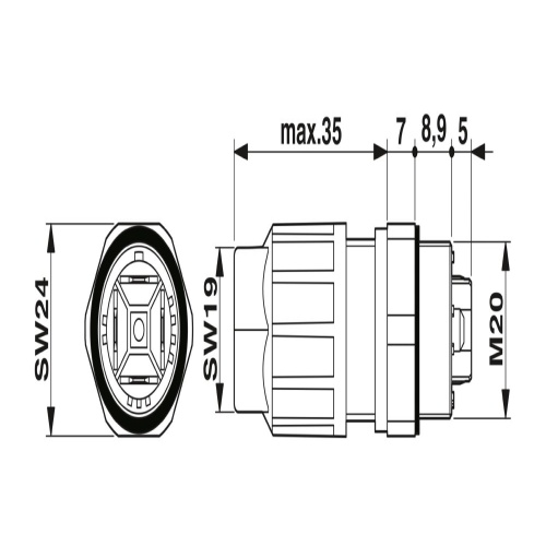 Phoenix Contact 1643000 Panel feed-through Q 1,5/4FL/24-M20KU-ESA BK