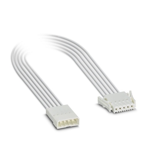 Phoenix Contact 1084534 A connecting cable with two printed circuit board connectors is available, featuring a rated current of 6 amps and varying lengths from 0.1 to 3 meters. The connector on the head includes three positions with a pitch of 2.5 mm, utilizing crimp connections and a white color. One side features individual litz wire, PVC insulation, and 22 AWG, while the other side has an additional pin with crimp connection, also featuring white individual litz wire, PVC insulation, and 20 AWG.
