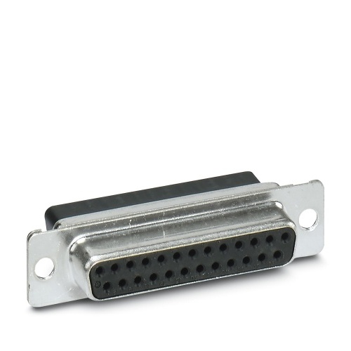 Phoenix Contact 1689967 A D-SUB contact carrier with a shell size 3 is designed to accommodate 25 signal contacts, typically featuring a crimp contact arrangement. The carrier's design accommodates straight contact arrangements, allowing it to be securely fastened into a panel using a 3mm hole for mounting, and can be housed in a VS-25 sleeve frame.