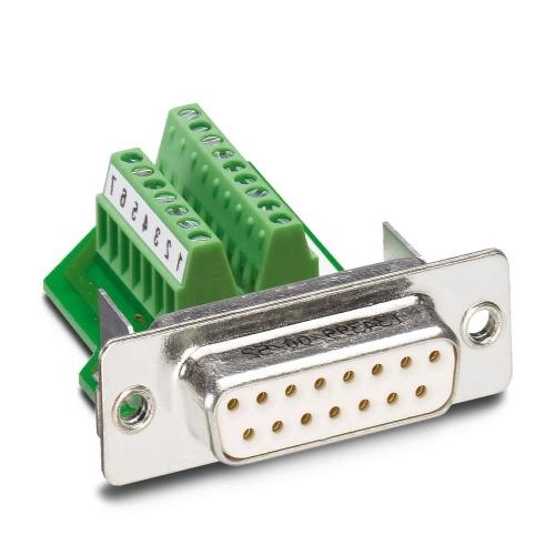 Phoenix Contact 1688094 A D-SUB contact insert featuring a shell size of 2 has 15 signal contacts with a female connector style, utilizing a screw connection method and comes in a straight configuration ideal for panel mounting frames and sleeve housings with enhanced protection against dust and water ingress up to IP67.