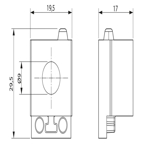 Phoenix Contact 0801680 A small round cable with a slotted design features an external diameter that ranges from 1x 8mm to 9mm in size and is made from halogen-free SEBS material, measuring 29.5mm in length, 19.5mm in width, and 17mm in height, with a gray color.