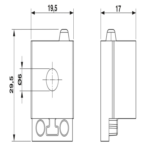 Phoenix Contact 0801628 A small round cable with a slotted design features a diameter ranging from 5mm to 6mm, encased in a protective NBR (nitrile rubber) sleeve. The exterior dimensions are approximately 29.5mm in length, 19.5mm in width, and 17mm in height, while the internal conductor is a single unit, with a black coloration.