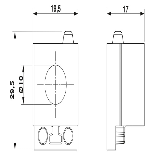 Phoenix Contact 0801620 The cable sleeve has a round design with a single conductor and an outer diameter that ranges between 9-10mm, made from Nitrile Rubber (NBR) material, features a black color, measures 29.5mm in length, 19.5mm in width, and 17mm in height.