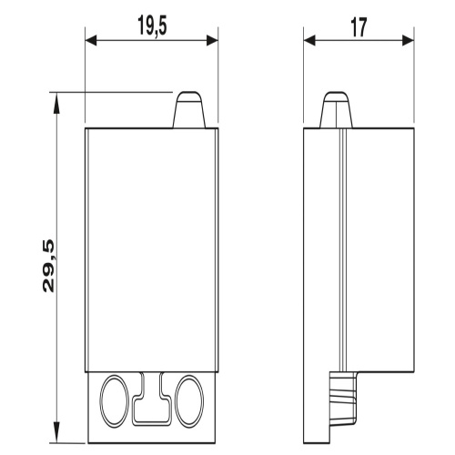 Phoenix Contact 0801670 A blind sleeve with a small number of conductors features a closed design made from NBR material, measuring 29.5mm in length, 19.5mm in width, and 17mm in height, with a black color.