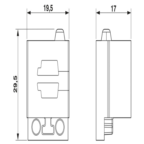 Phoenix Contact 0801669 The specified cable has a small sleeve with two conductors of the AS-i type, designed as a left-right configuration, featuring a slotted design made from NBR material and measuring 29.5 mm in length, 19.5 mm in width, and 17 mm in height, and is colored black.