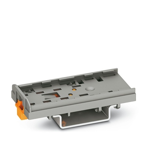 Phoenix Contact 3274054 A DIN rail adapter is available in two sizes, NS 35 and NS 15, which can accommodate various types of FIX blocks with copper cross-sections of 2.5mm², 4mm², or 10mm², and is distinguished by its gray color.