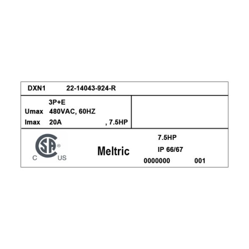 Meltric 22-14043-924-R Hazardous Location DXN20 Receptacle 480 VAC 20A Size 1 3P+G Black Poly IP66,IP67 CSA Class I Div 2 Screw Terminal Metal Pawl (On Poly Receptacle) UL 498,UL 1682