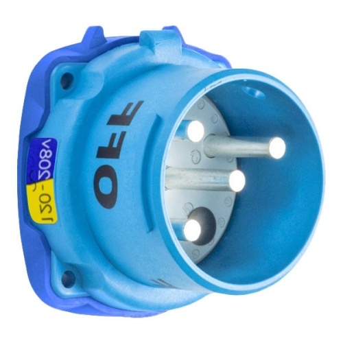 Meltric 31-68236-K16 Standard Duty DR100 Inlet 120/208 VAC 100A Size 4 2P+N+G Blue Poly IP54 Screw Terminal UL 498,UL 1682