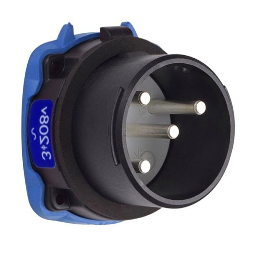 Meltric 35-38163-HAZ Hazardous Location DS30 Inlet 208 VAC 30A Size 3 3P+G Black Poly CSA Class I Div 2 Screw Terminal UL 498,UL 1682