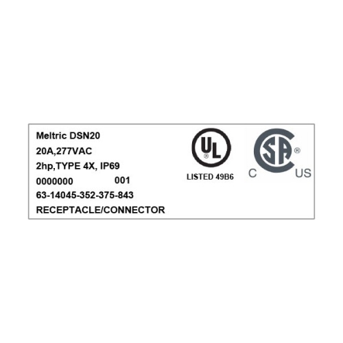 Meltric 63-14045-352-375-843 Switch-Rated DSN20 Receptacle 277 VAC 20A Size 1 1P+N+G Blue Poly IP66,IP67,IP69 Screw Terminal Mushroom Pawl UL 498,UL 1682
