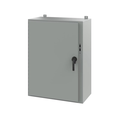 nVent Hoffman A42SA3216LPPL Preferred Cutout Disconnect Enclosure With Handle. 42" x 31.38" x 16" (HxWxD). Steel Type 12 Includes latch pivot post(s) and cover interlock bracket welded to door, cover latch bar for door, and instructions for installing disconnects. (DOES NOT INCLUDE BACK PANEL)
