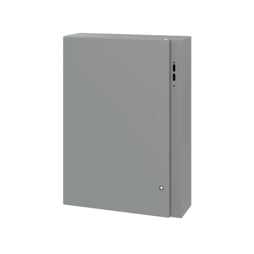 nVent Hoffman CDSC36268 CONCEPT Disconnect Enclosure. 36" x 26" x 8" (HxWxD). ANSI 61 Gray Steel Type 4 with 2-point latch with handle includes Door interlock bracket welded to door, Door latching system (2-point or 3-point) installed on door, Instructions to locate and install disconnect, Hardware kit consisting of padlocking door handle, panel mounting nuts, grounding hardware and sealing washers for mounting holes. (DOES NOT INCLUDE BACK PANEL)