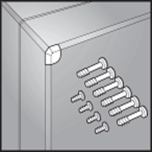 Includes six self-tapping, stainless steel cover screws, four self-tapping plated panel screws and six removable plastic caps