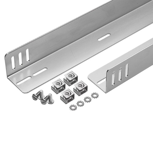 Guides mount between two pairs of rack angles, with slotted holes provided for vertical or lateral adjustment