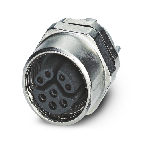 Phoenix Contact 1456666 This device connector features a rear mounting option and uses an Ethernet CAT5 cable with a 8-position socket that follows IEC 11801:2002 standards, is mounted directly to the PCB via M12-SPEEDCON and has a solder connection with THR coding, it also meets RoHS II regulations for lead-free alternatives and may offer a 6c composition with less than 0.1% lead on request in advance.