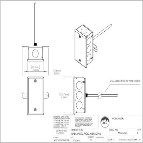 ACI 119663 20,000 Ohm Thermistor, Rigid Probe Averaging, 24", Galvanized Enclosure