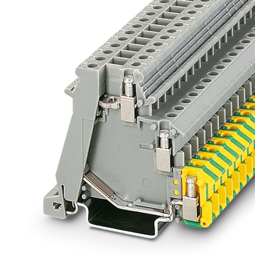 Unlike the DIK terminal blocks, the lower level of these output terminal blocks makes direct contact with the DIN rail and as a PE connection are marked yellow-green
