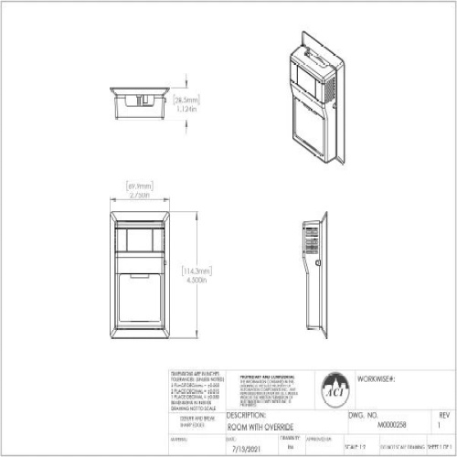 ACI 122855 Relative Humidity, RH Outputs: 0-5, 0-10 VDC & 4-20mA (Default), Room (R), ± 3% Accuracy, 10K Ohm Thermistor (Type III), w/ Override