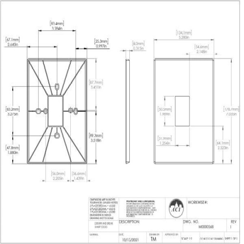The A/MOUNTING PLATE may be used to mount devices over a larger electrical enclosure or hole in the wall. It is made of a plastic material and contains numerous mounting holes to match most standard electrical boxes used in the industry today. It may be mounted vertically or horizontally. The colors available match ACI’s standard room enclosures but will match many similar colored devices.