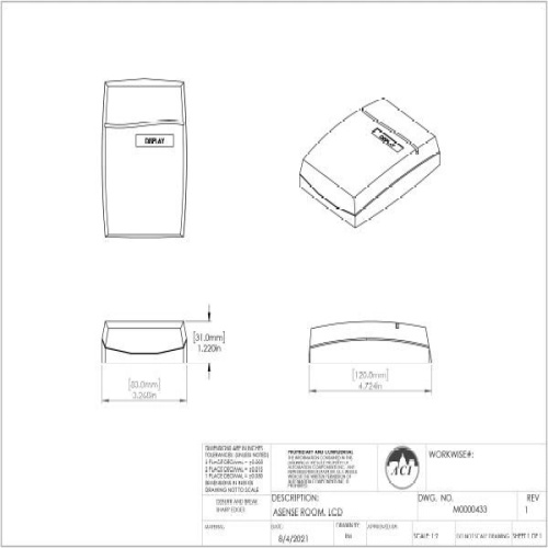 ACI 130530 Carbon Dioxide Sensor, Room Mount, 0-2000 ppm, Relay and Temperature, LCD, 0-10VDC & 4-20mA
