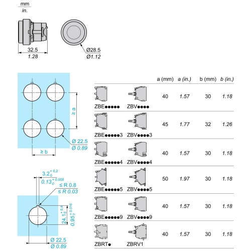 A wide choice of contact blocks for general purposes or specific applications (low current, standard)