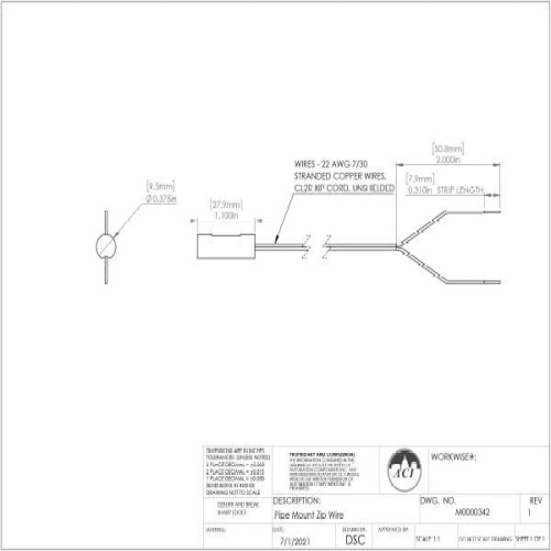ACI 142026 A/20K-PM-20'ZIP 20K Ohm Pipe Mount Thermistor
