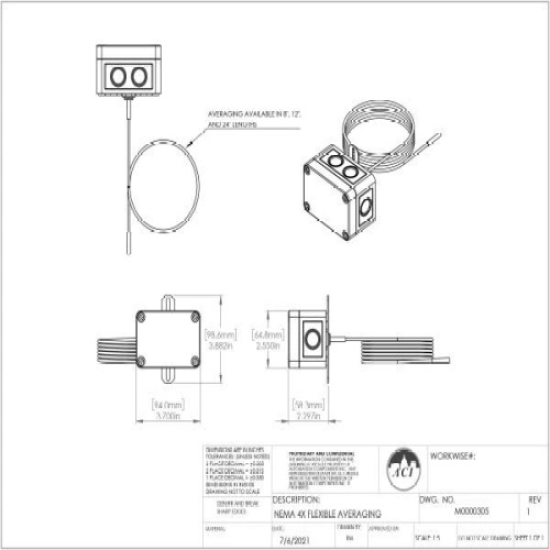 The ACI Thermistor Flexible Averaging Series features an 18 AWG Plenum Rated cable sensingelement with two, 12 inch 22 AWG Etched Teon colored lead wires to dierentiate thedierent sensor types
