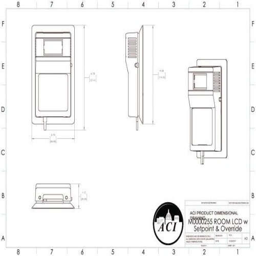 ACI 143063 Transmitter w/ 100 Ohm RTD, Room (R) with Setpoint and Override, 4-20mA Output, 55-85, LCD