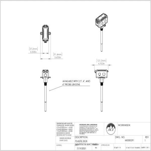 ACI 143495 1,800 Ohm Thermistor, Immersion, Machined Well, 4", Plastic Enclosure
