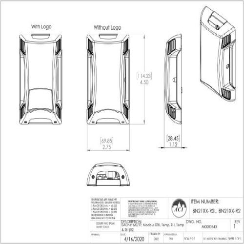 ACI 146522 BACnet MS/TP, Modbus RTU, Relative Humidity and Temperature, Room (R2)
