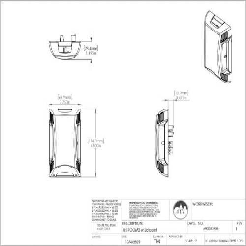 ACI 146714 Relative Humidity, RH Outputs: 0-5, 0-10 VDC & 4-20mA (Default), Room (R2), ± 2% Accuracy, 1,000 Ohm (Two Wires) RTD, Setpoint:0-1K