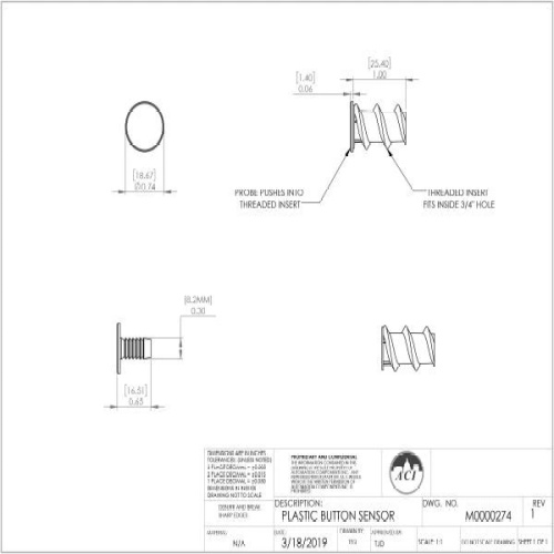 ACI's Low-Profile "Button" Sensor is designed to be aesthetically pleasing for higher profile applications. It's small size and appearance make it a perfect choice for applications where temperature sensors should blend into the background. Options include brass, stainless steel, or plastic for installation flexibility.