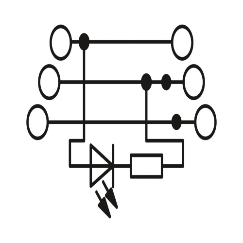UT 2,5-3L-LA24RD/O-M Phoenix Contact 3214288 Phoenix Contact UT 2.5-3L-LA24RD/O-M. Three Level Terminal Block 5.2mm Gray with Integrated Diode conducting from top to middle screw connection, up to 500V, 24A, 12-26AWG (Sold in packs of 50)