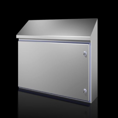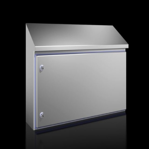 Rittal 1314600 Hygienic Design Enclosure, Enclosure solution tailored to the requirements of the food and beverage industry. Roof angled forwards by 30°. Seal dyed blue to clearly distinguish it from foodstuffs, Height: 16.9 ", Width: 31.9 ", Depth: 21.6 "