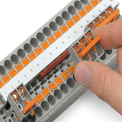 The Push-in connection terminal blocks are characterized by the system features of the CLIPLINE complete system and by easy and tool-free wiring of conductors with ferrules or solid conductors