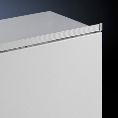 Rittal 2426100 Roof/Wall Mounting Accessories, To prevent dust from accumulating between the enclosure and the upper horizontal housing profile. The dust guard provides space for text or company logos., Height: "