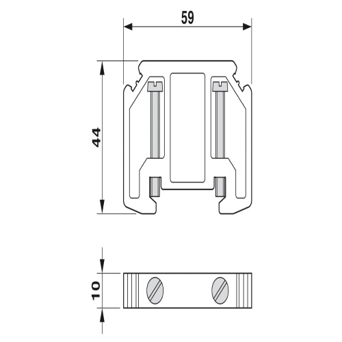 Phoenix Contact 1201662 For the end clamp on a UKH 50 to UKH 240 mounting system, it is attached to the DIN rail NS 35 using two screws, spanning 10mm in width and typically made of an aluminum finish.